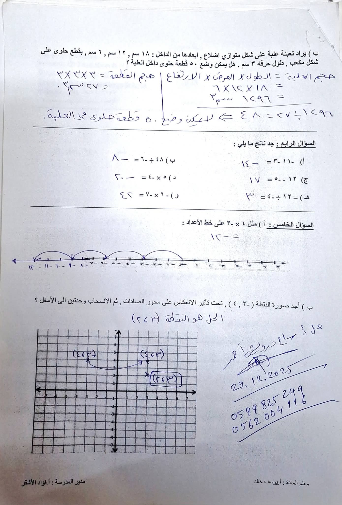 امتحان نصف الفصل الأول في الرياضيات للصف السابع