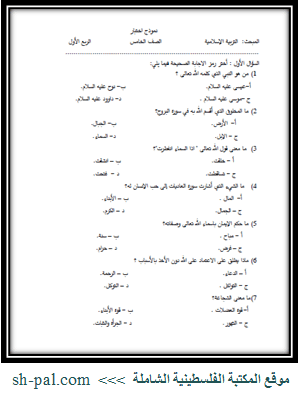 نموذج اختبار في التربية الإسلامية (الفترة الأولى) للصف الخامس الفصل الأول عدد الصفحات : 2 صفحة نوع الملف : ملف PDF القسم الخاص بـ : الصف الخامس لمشاهدة و تحميل الملف إضغط هنا للمشاهدة والتحميل
