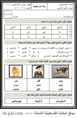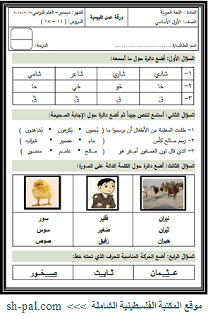 أوراق عمل تقييمية لشهر ديسمبر في جميع المواد للصف الأول الفصل الأول