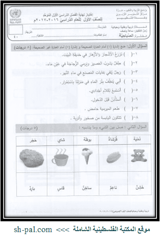 ختبار التربية الوطنية والحياتية للصف الأول نهاية الفصل الأول 2017 (صباحي - مسائي)