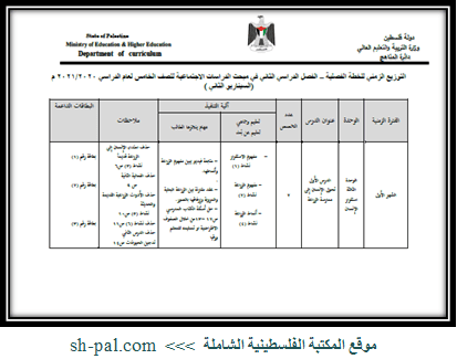 التوزيع الزمني لمبحث الدراسات الاجتماعية من الصف الخامس وحتى التاسع الفصل الثاني (حكومة - غزة) 2020 - 2021 دولة فلسطين وزارة التربية والتعليم العالي دائرة المناهج عدد الصفحات : 21 صفحة نوع الملف : ملف PDF لمشاهدة و تحميل الملف إضغط هنا...