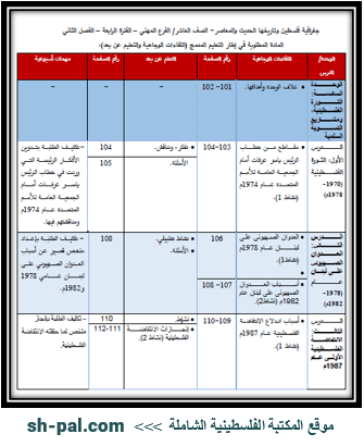المادة المطلوبة لمبحث جغرافية فلسطين وتاريخها للصف العاشر مهني (الفترة الرابعة) الفصل الثاني
