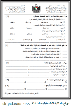امتحان نصف الفصل الثاني في الدراسات الاجتماعية للصف الخامس