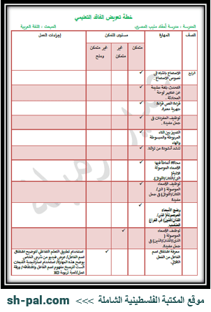 خطة الفاقد التعليمي لمبحث اللغة العربية للصف الرابع
