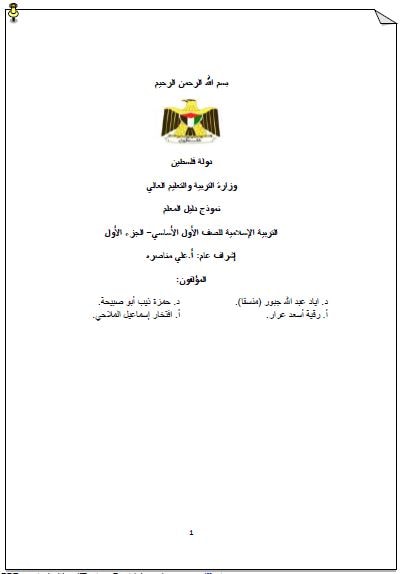 دليل المعلم لمبحث التربية الإسلامية للصف الأول الفصل الأول