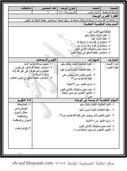 تحضير تربية اسلامية من الدرس الثامن وحتى الدرس العاشر للصف الأول الفصل الأول