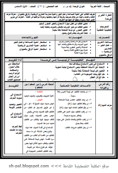 تحضير الحروف (ك - ض - هـ) للصف الأول الفصل الثاني وفق النظام الجديد (المخرجات)