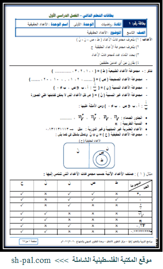 بطاقات التعلم الذاتي والاستدراكي للصف التاسع 2021 - 2022 (وكالة)