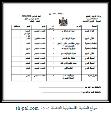 خطة التربية الإسلامية والتلاوة والتجويد للصف العاشر الفصل الأول 2020 - 2021
