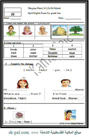 امتحان شهر ابريل في اللغة الانجليزية للصف الثاني الفصل الثاني