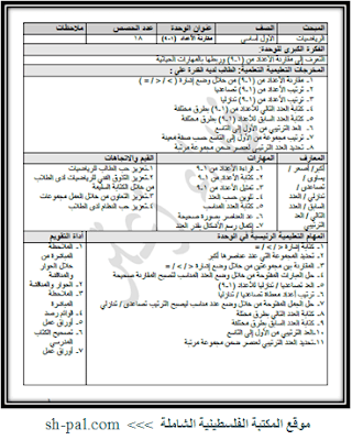 تحضير رياضيات الوحدة الثانية للصف الأول الفصل الأول