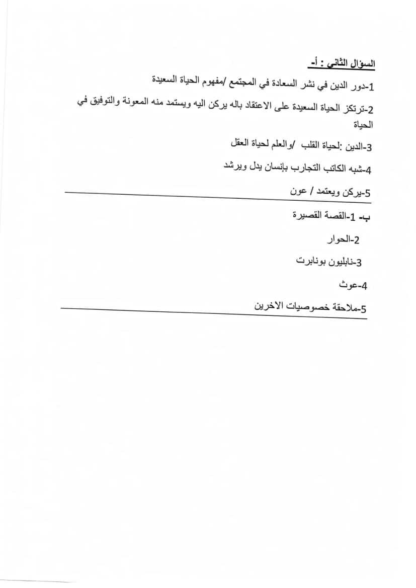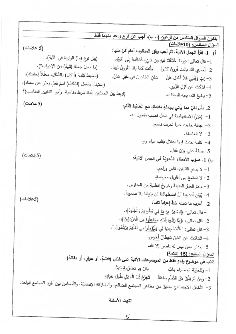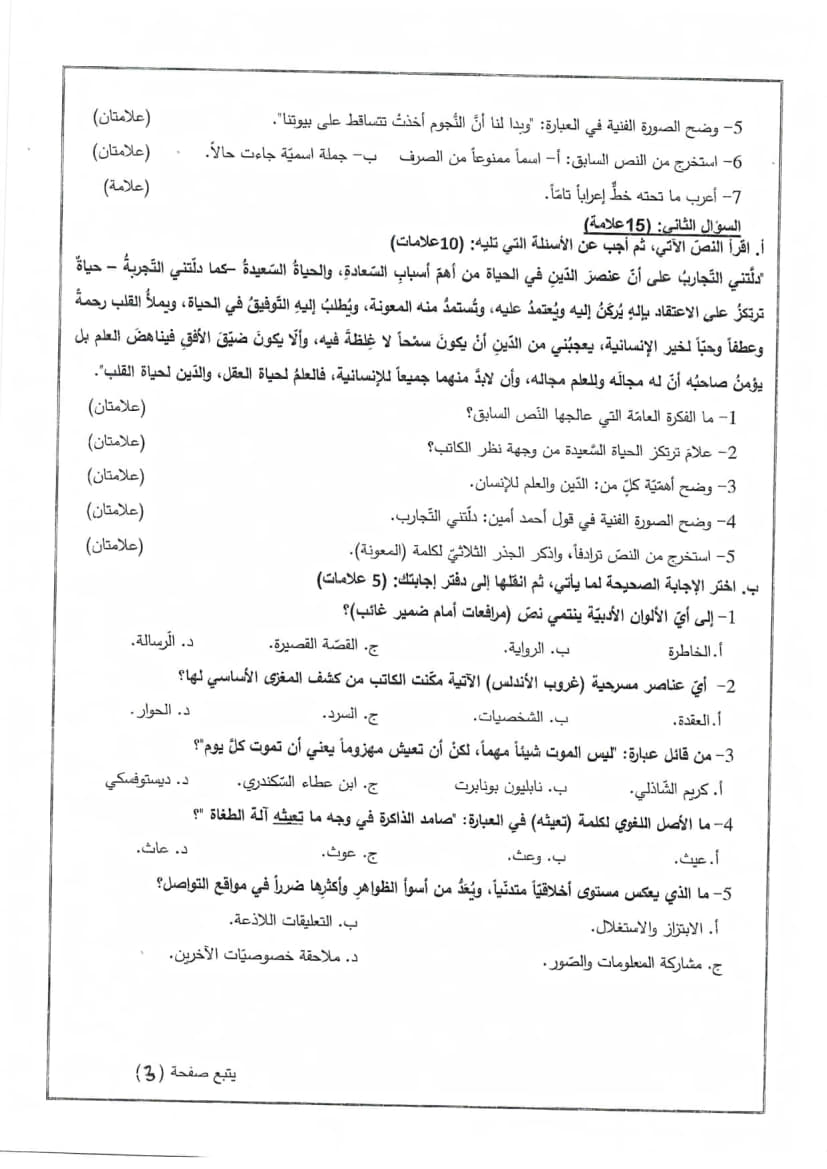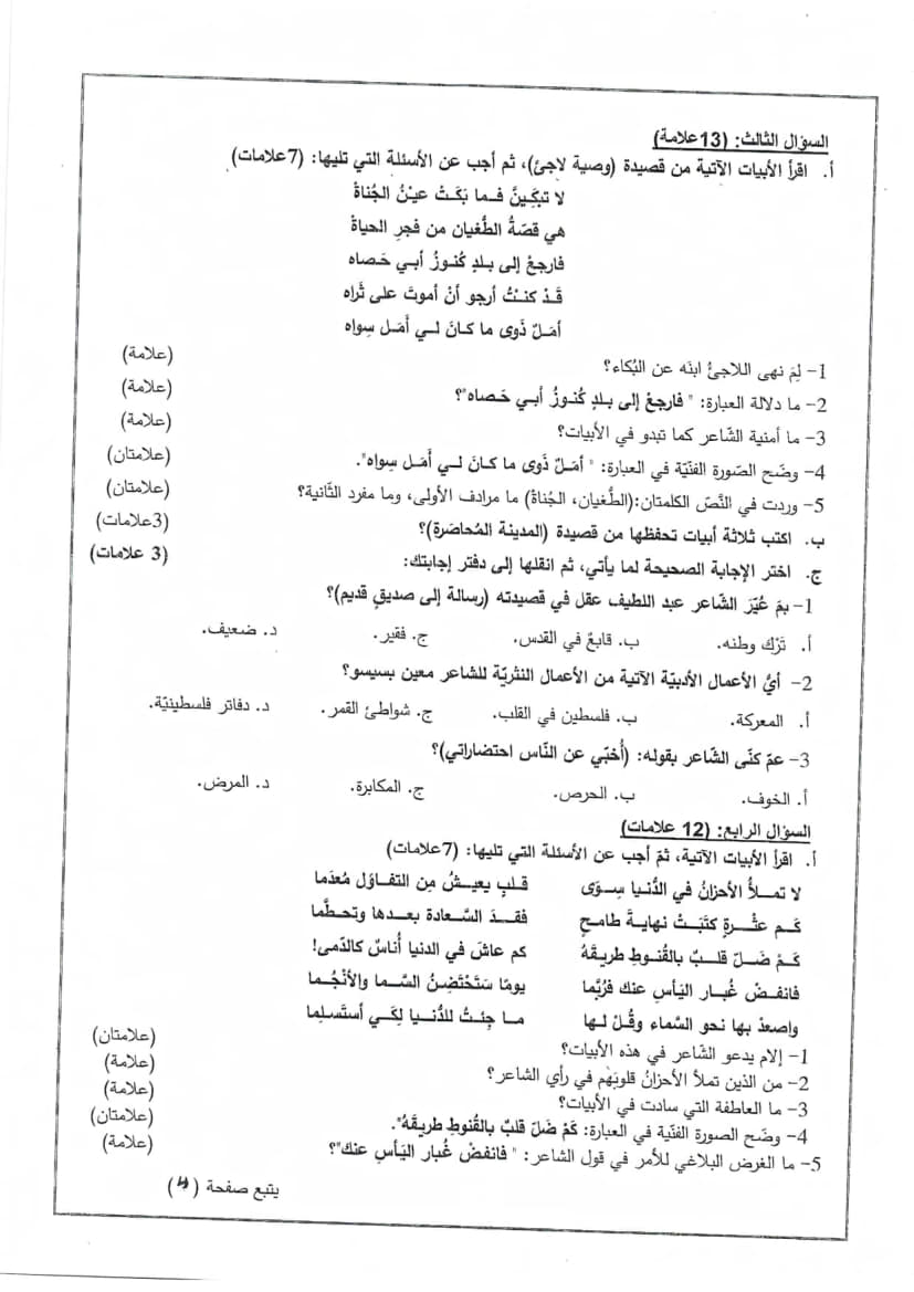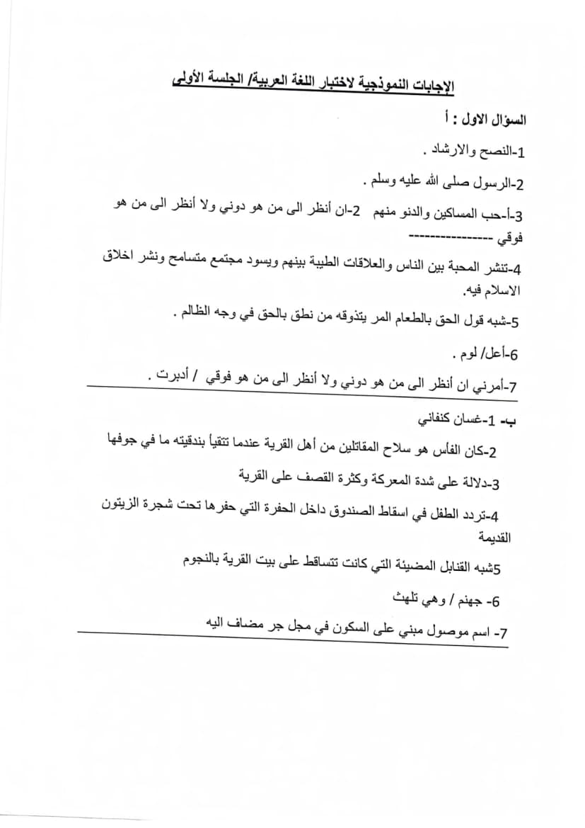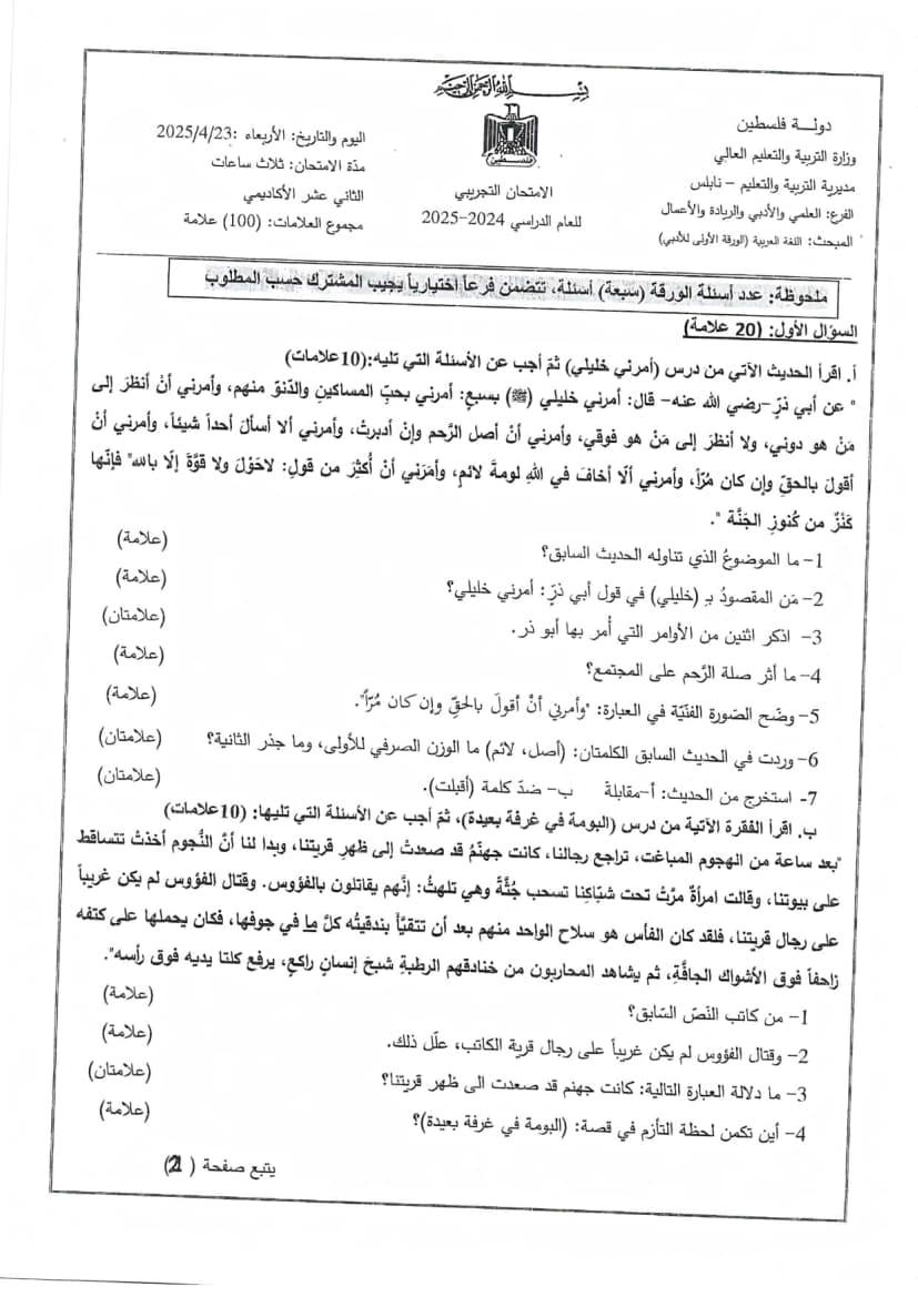 امتحان تجريبي اللغة العربية الورقة الأولى توجيهي 2025 (نابلس)