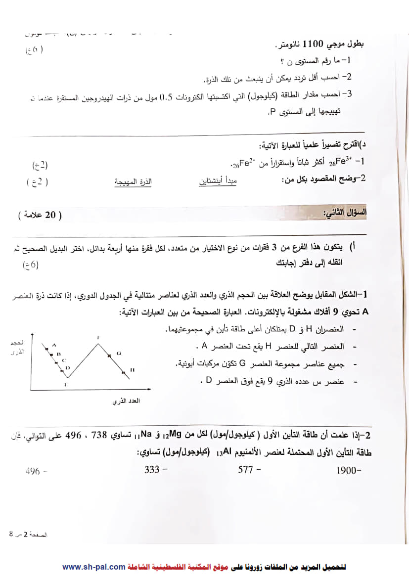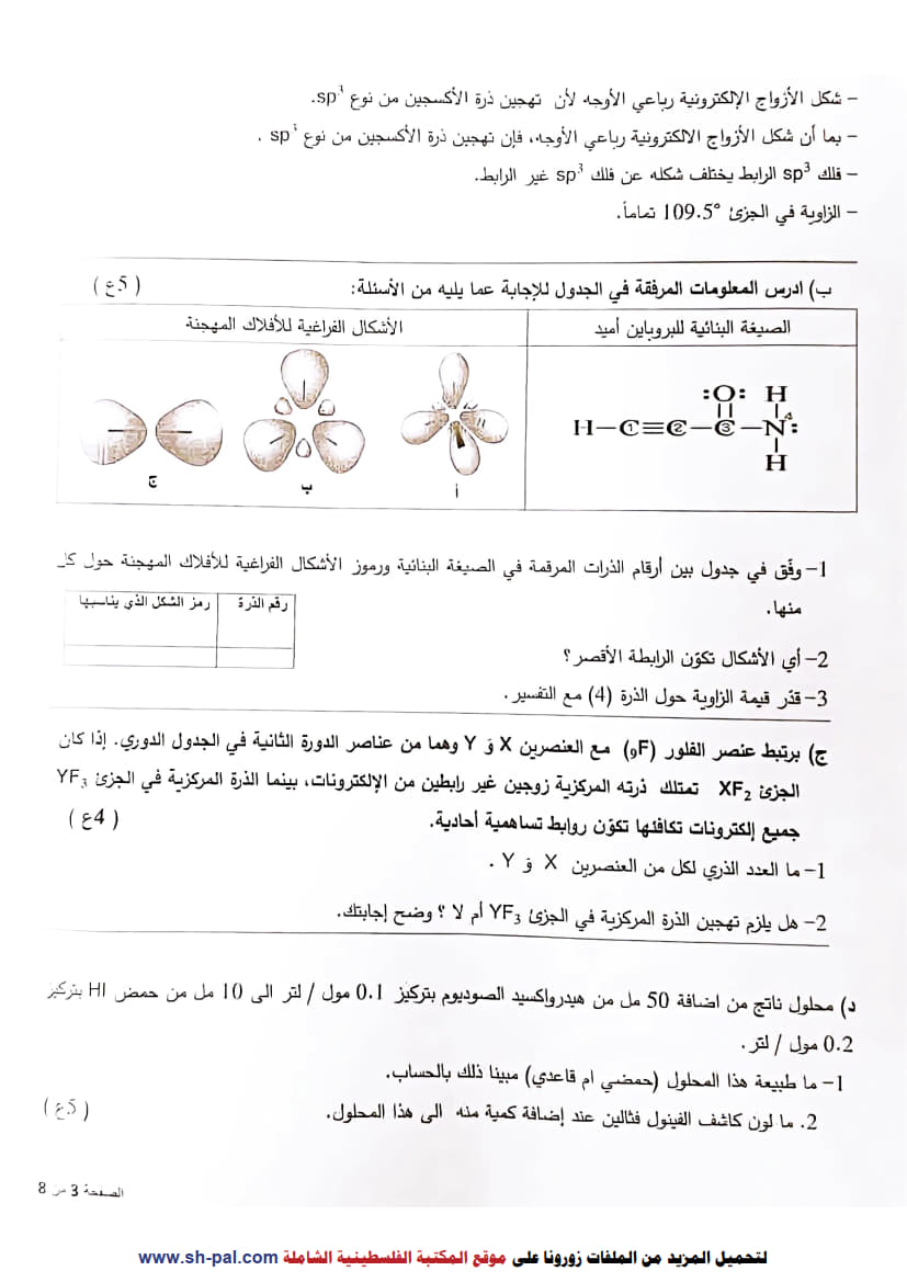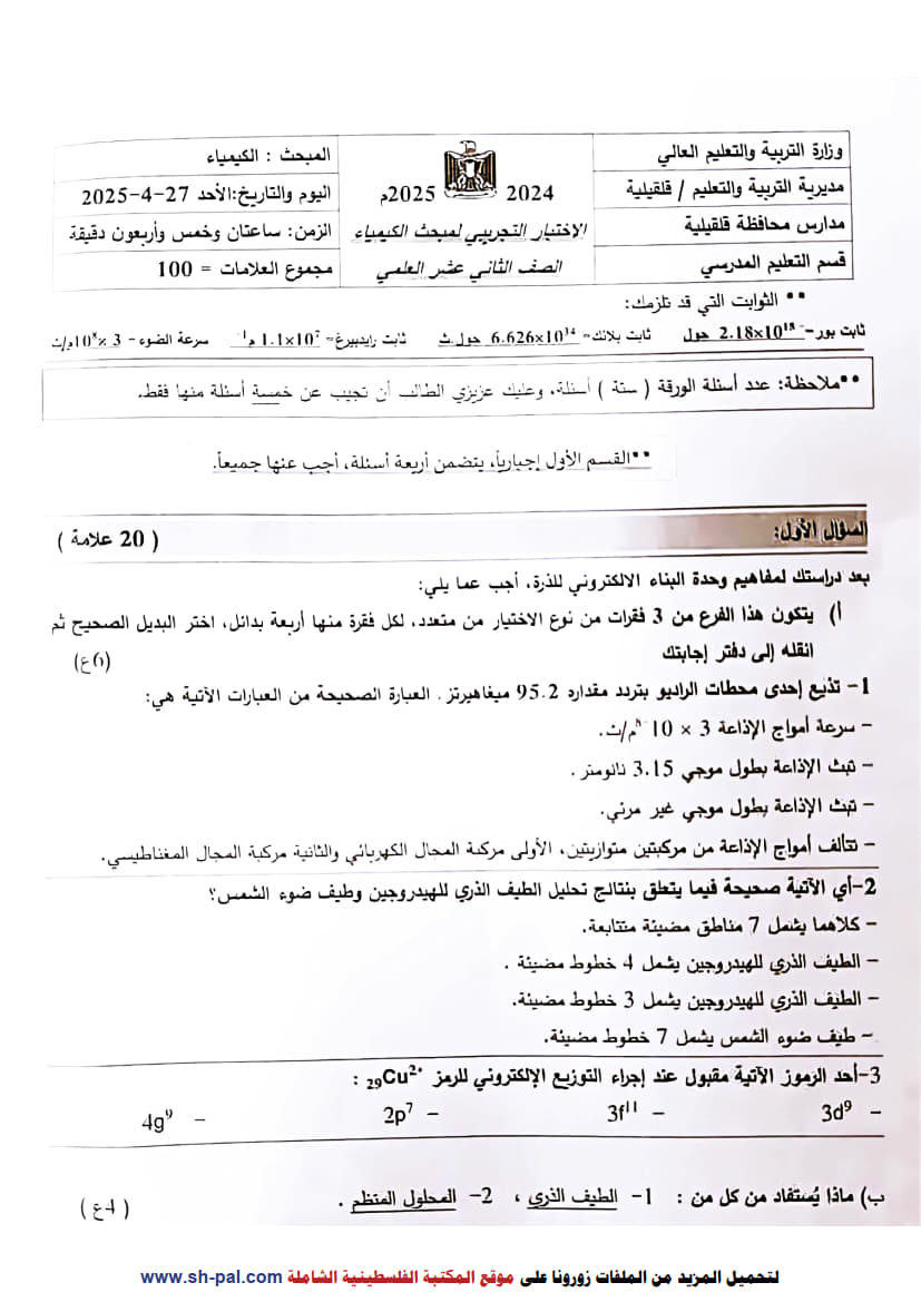 امتحانات اختبار تجريبي كيمياء توجيهي 2025