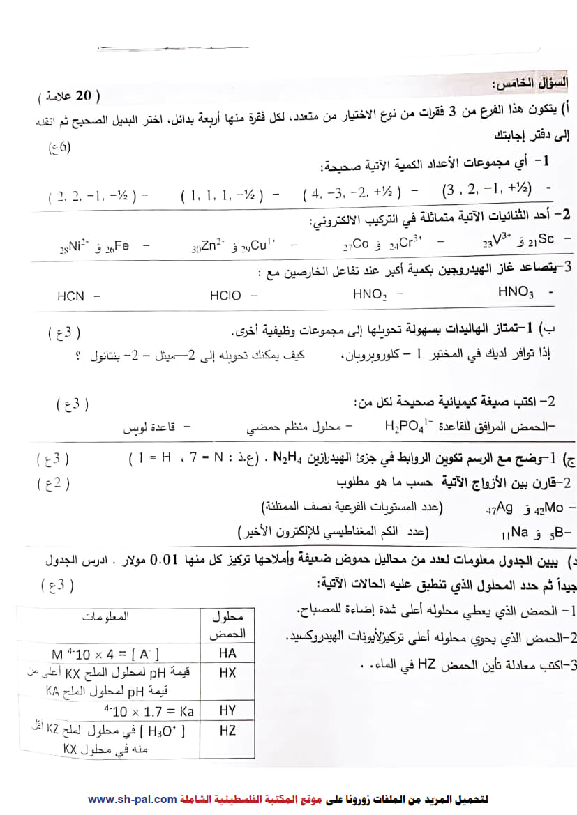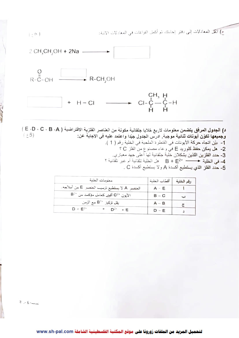 امتحان تجريبي كيمياء توجيهي 2025
