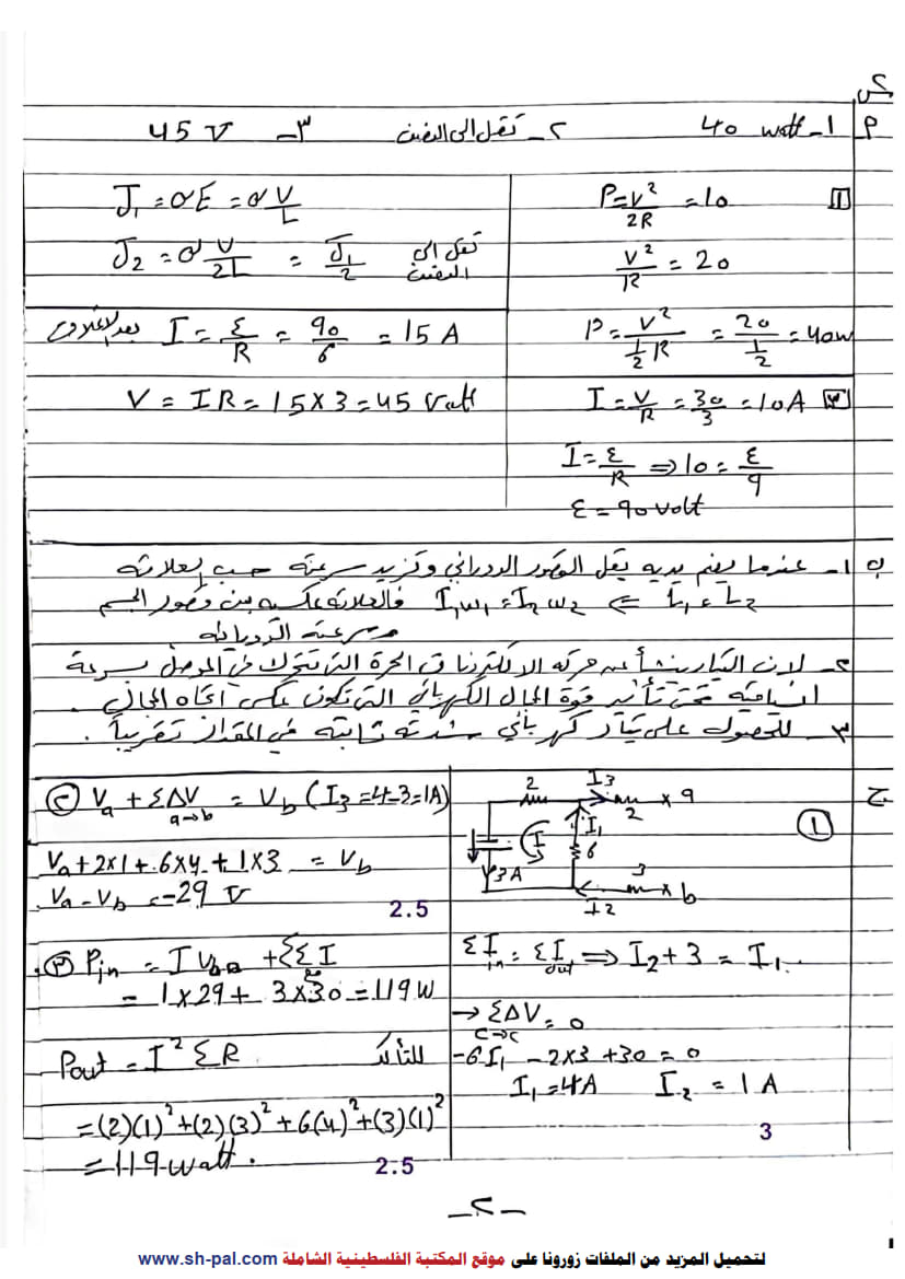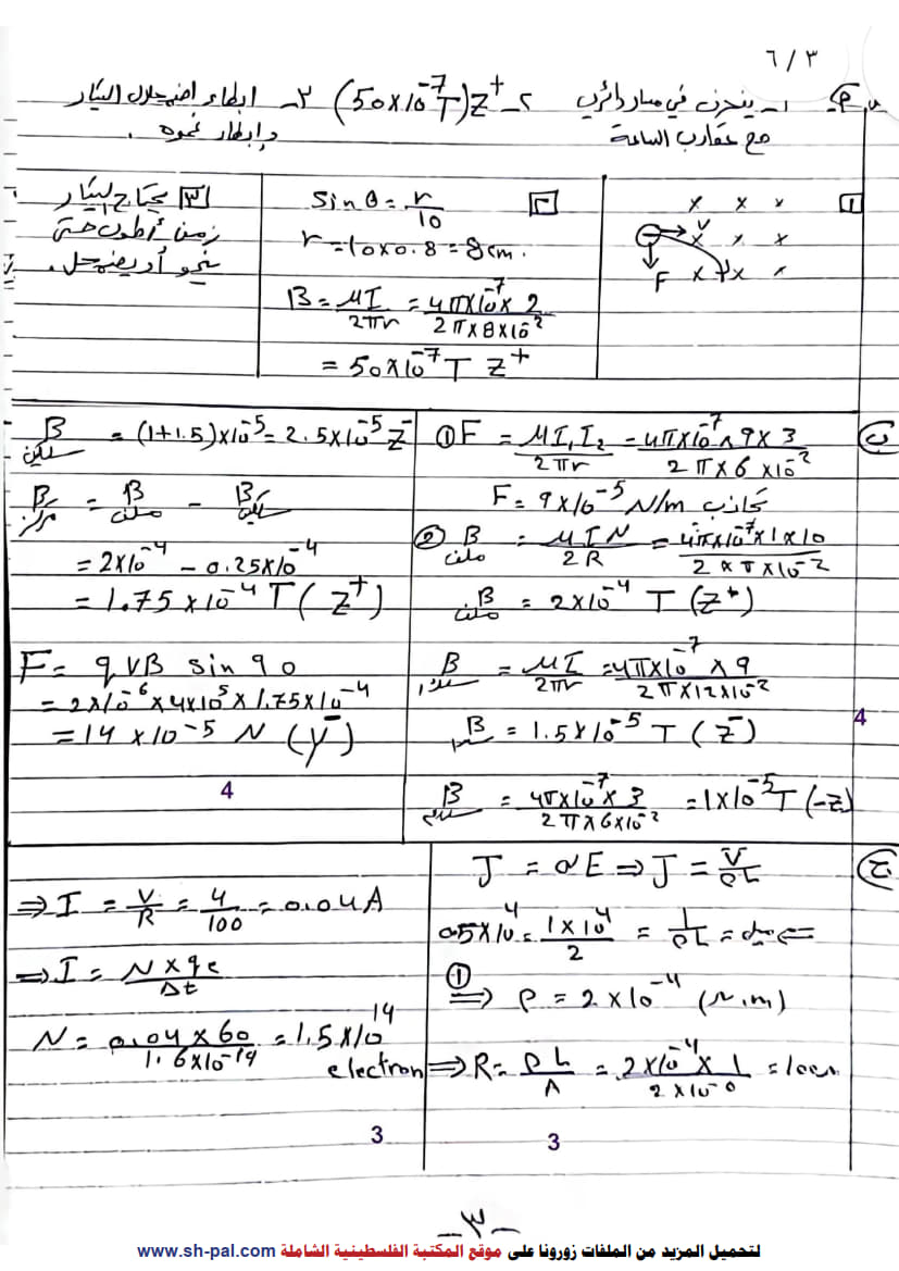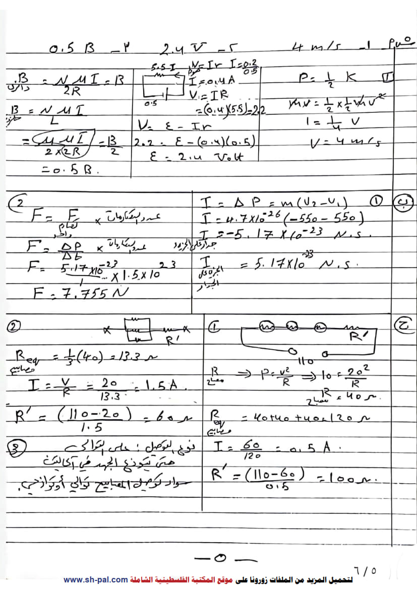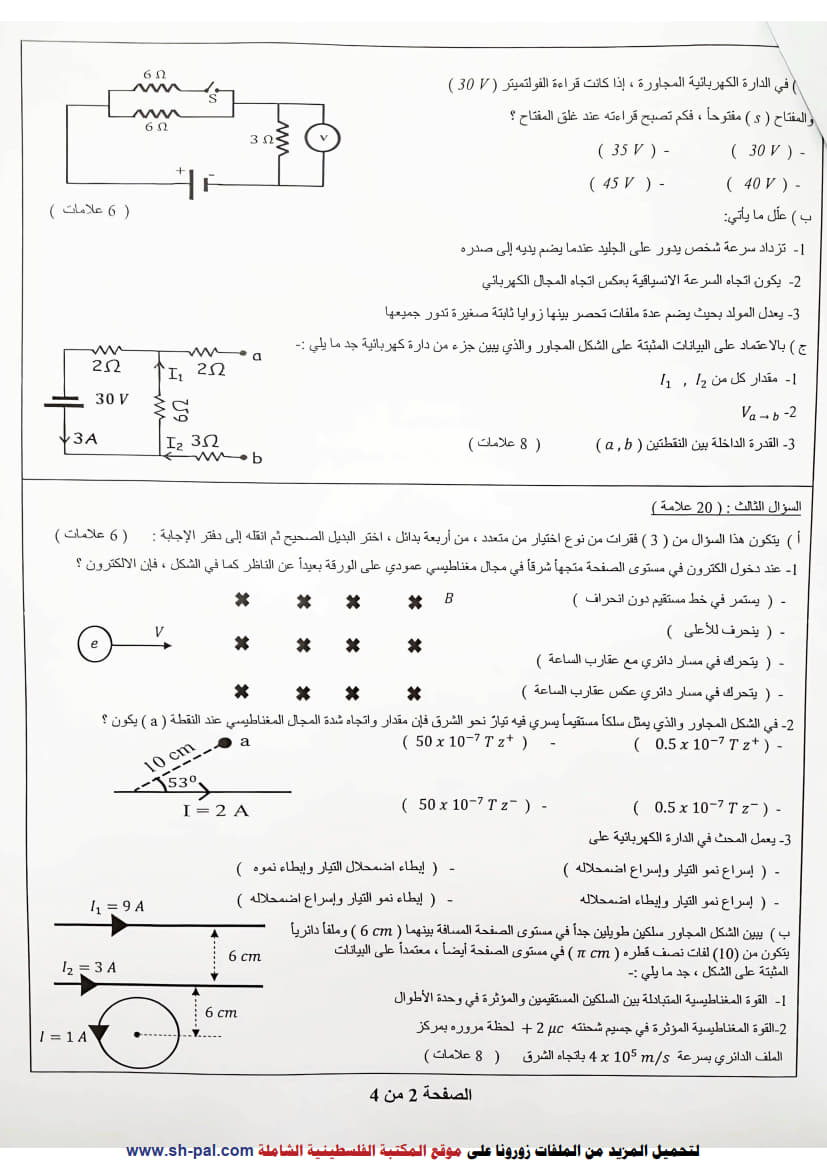 امتحان تجريبي فيزياء توجيهي 2025 (سلفيت)