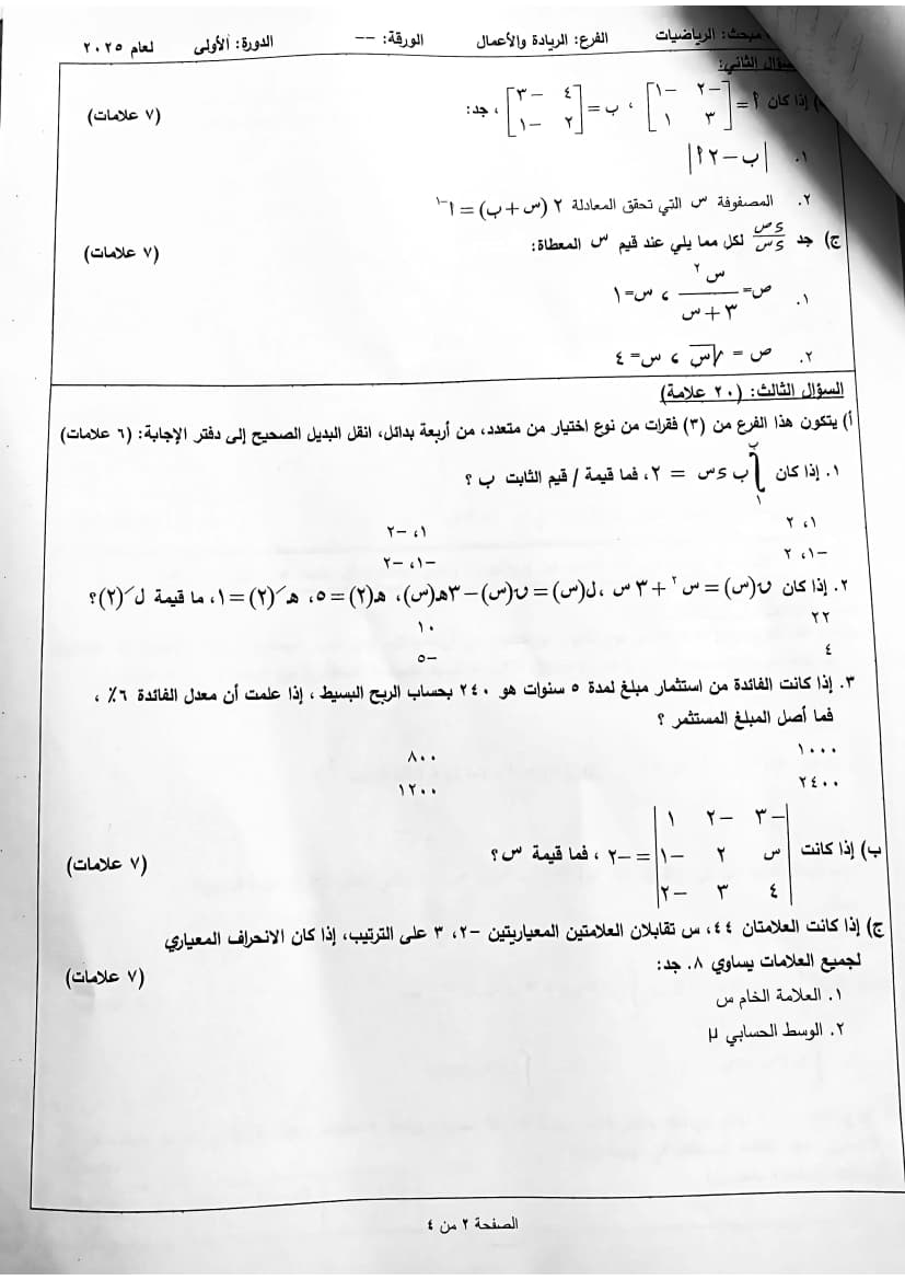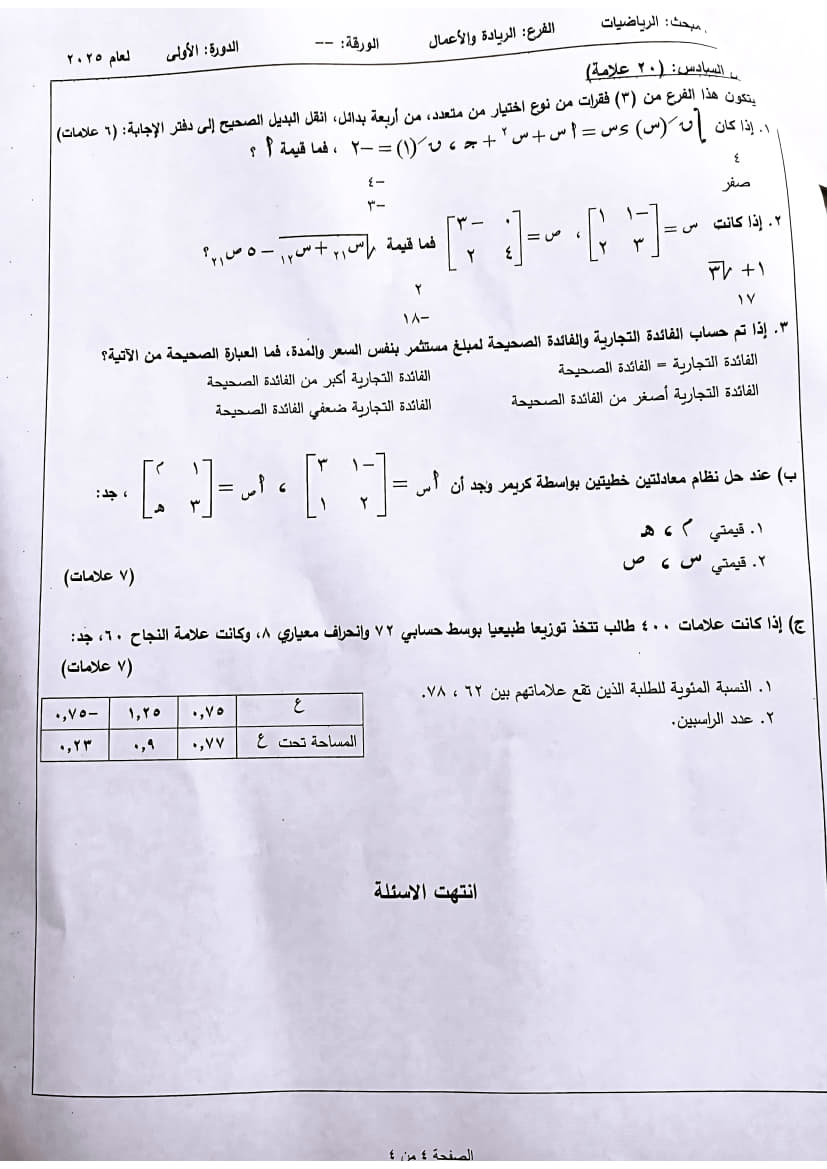 اختبار رياضيات الثانوية العامة (توجيهي تجاري) الدورة الأولى 2025 نوع الملف : ملف PDF القسم الخاص بـ : الصف الثاني عشر لمشاهدة و تحميل الملف