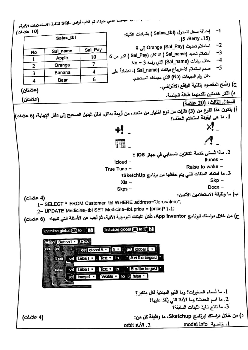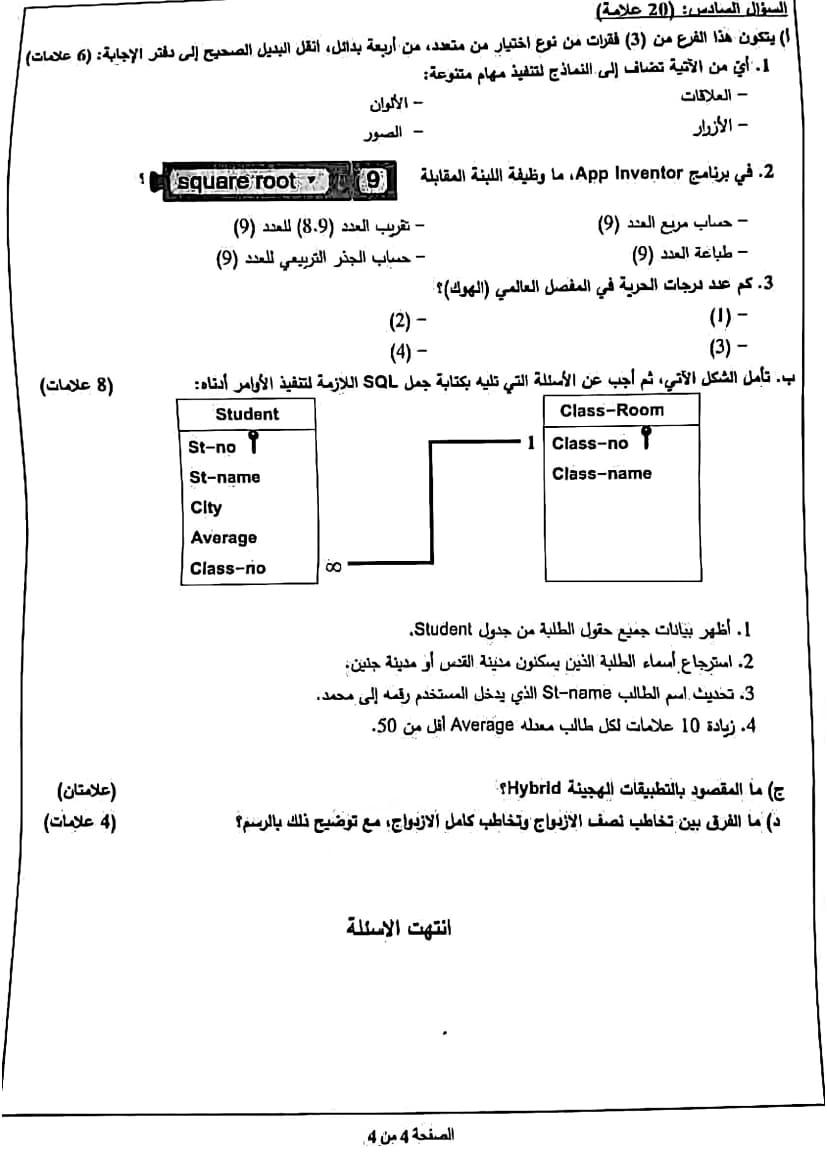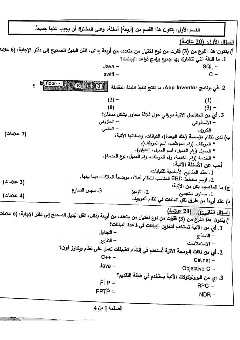 امتحان تكنولوجيا المعلومات الثانوية العامة (توجيهي علمي وصناعي) الدورة الأولى 2025 1.jpgامتحان تكنولوجيا المعلومات الثانوية العامة (توجيهي علمي وصناعي) الدورة الأولى 2025 2.jpgامتحان تكنولوجيا المعلومات الثانوية العامة (توجيهي علمي وصناعي) الدورة الأولى 2025 3.jpgامتحان تكنولوجيا المعلومات الثانوية العامة (توجيهي علمي وصناعي) الدورة الأولى 2025 4.jpg