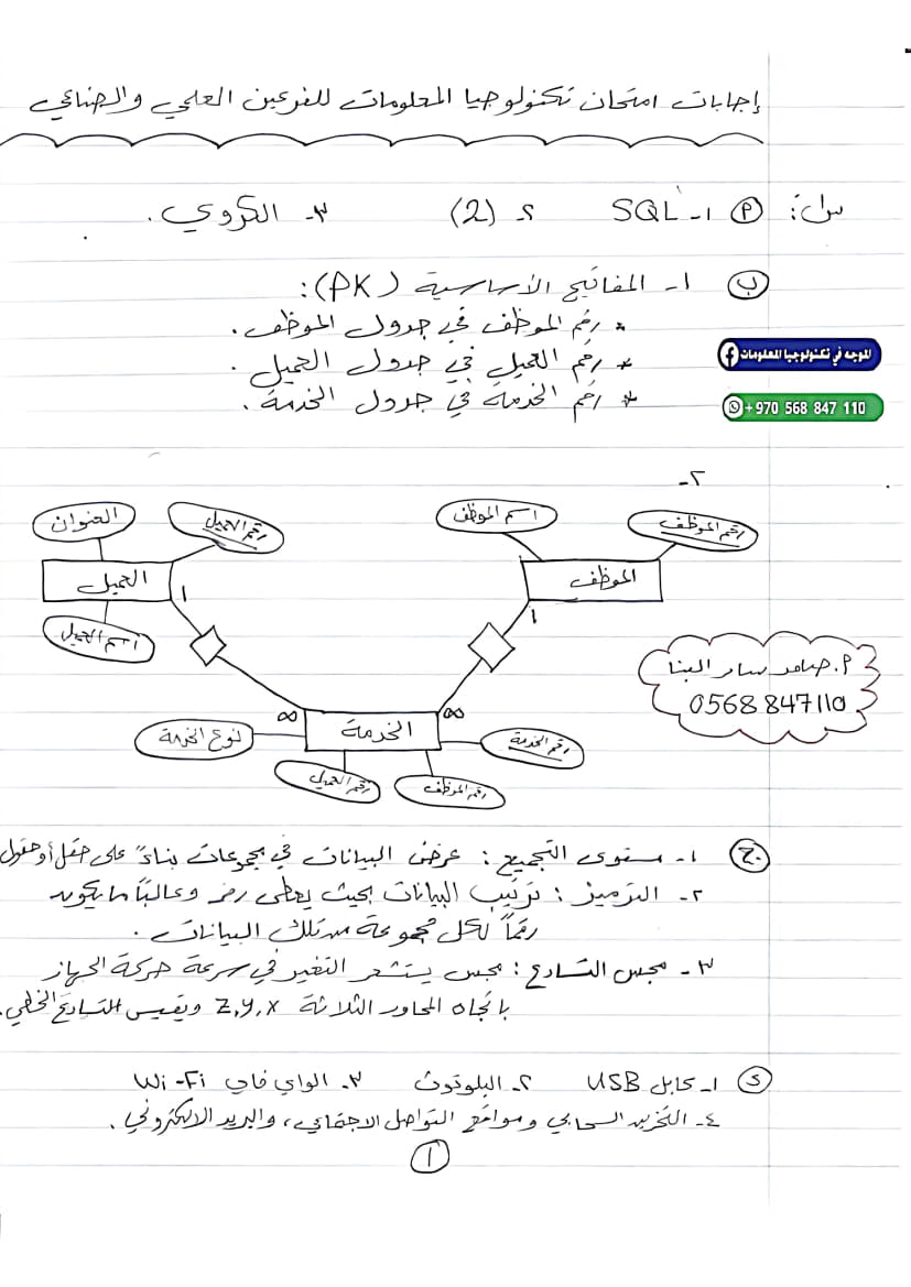 إجابة امتحان تكنولوجيا المعلومات الثانوية العامة (توجيهي علمي وصناعي) الدورة الأولى 2025