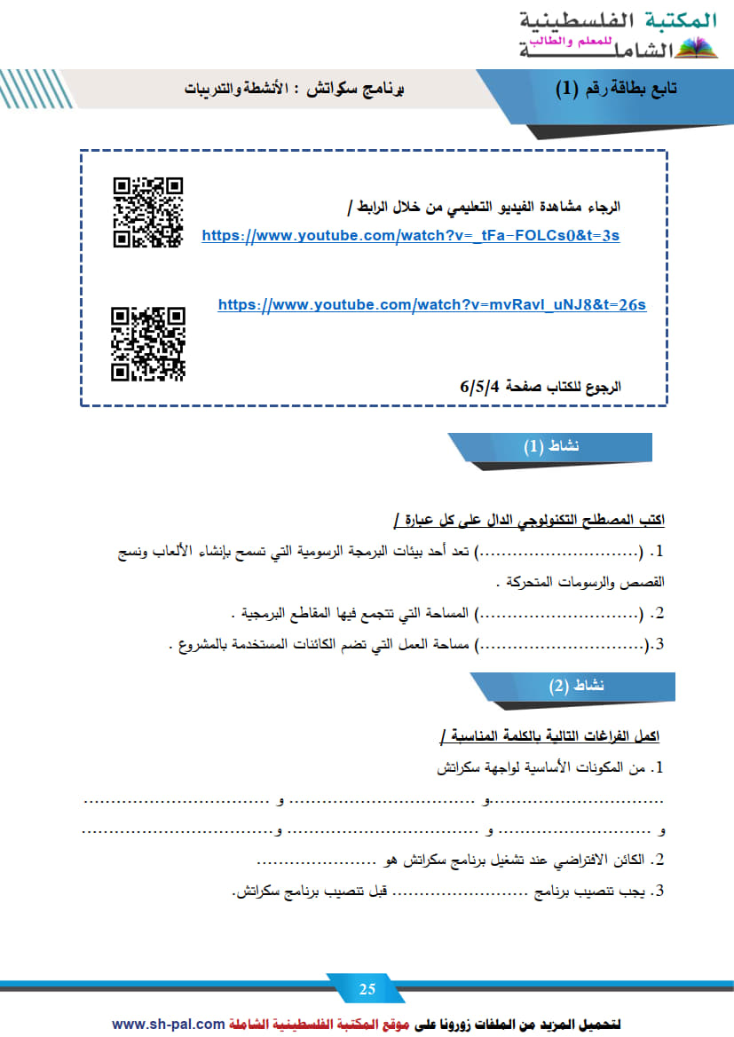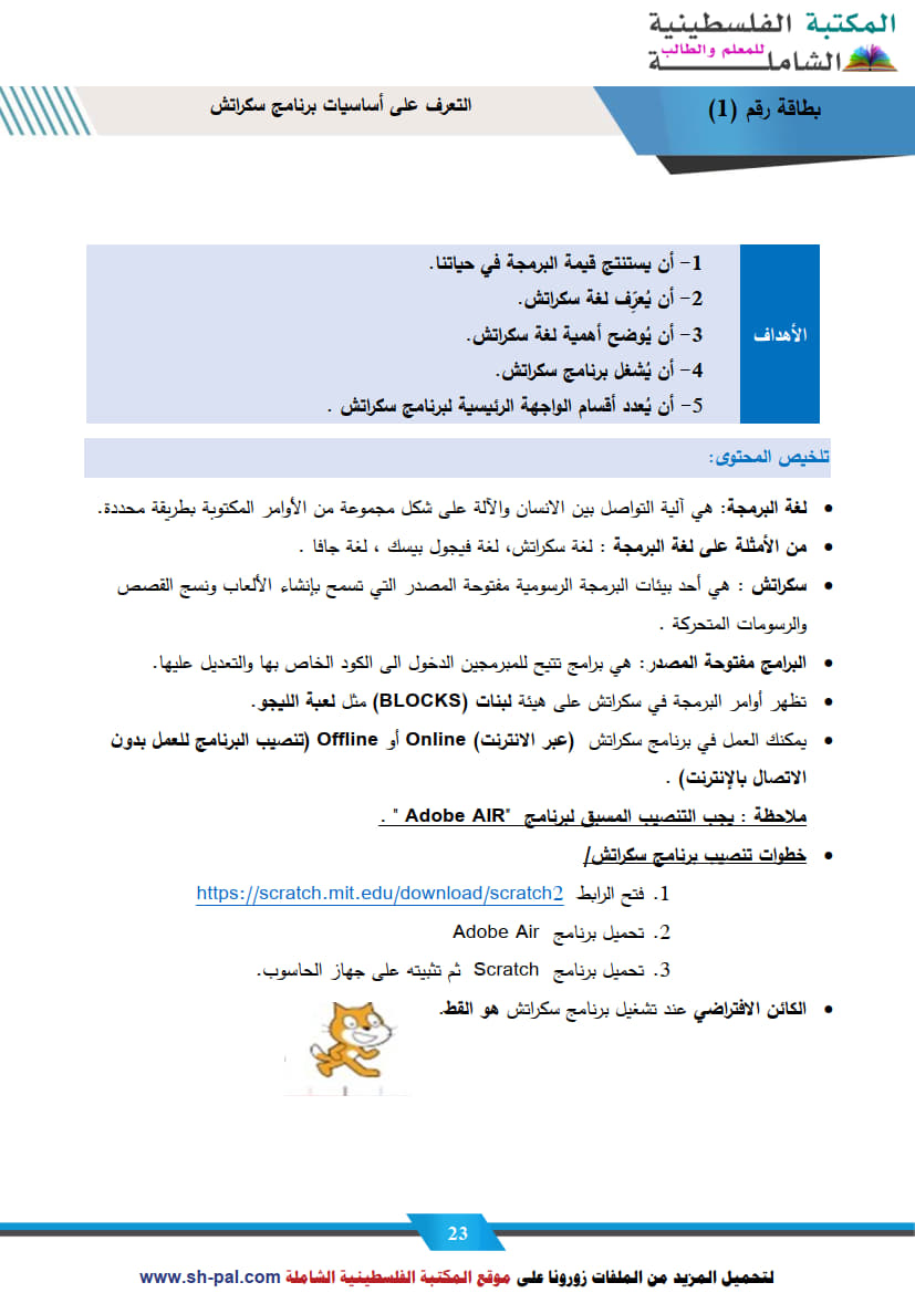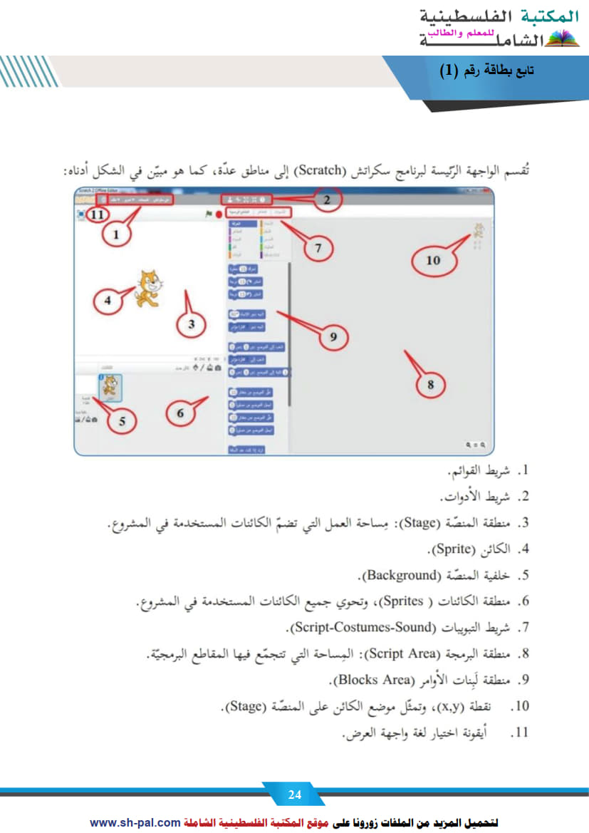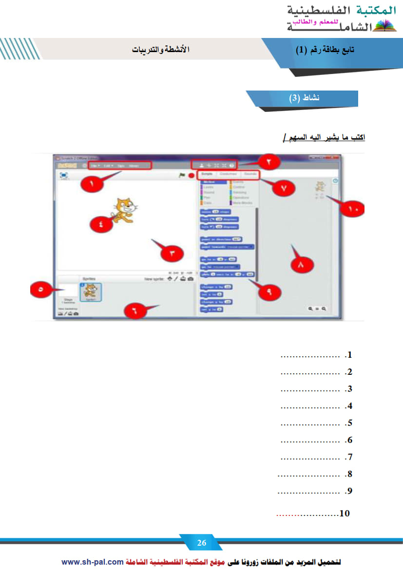 1) ملخص وأسئلة تدريبية في درس برنامج سكراتش