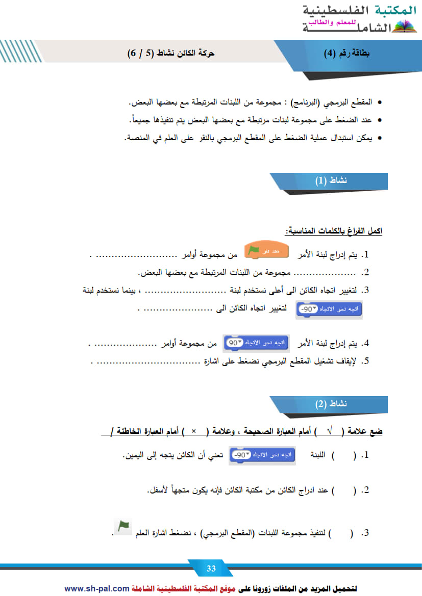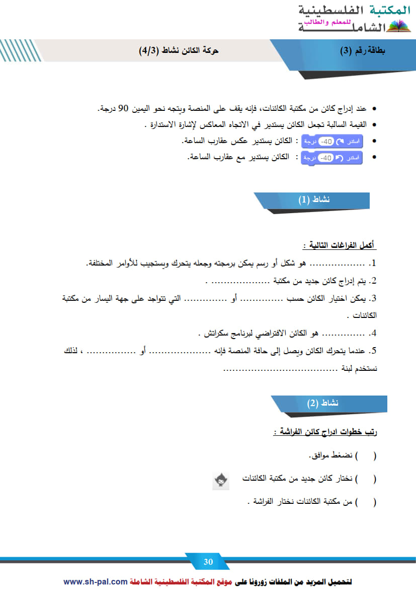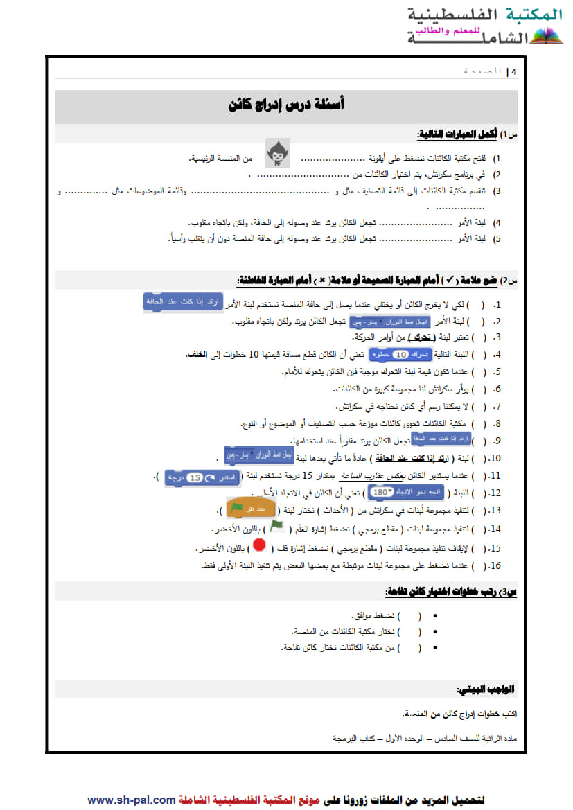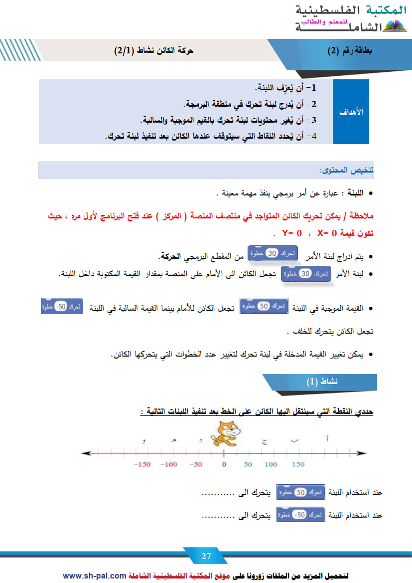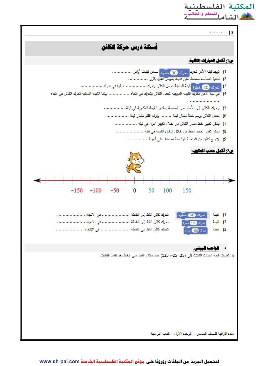 1) ملخص وأسئلة تدريبية في درس حركة الكائن