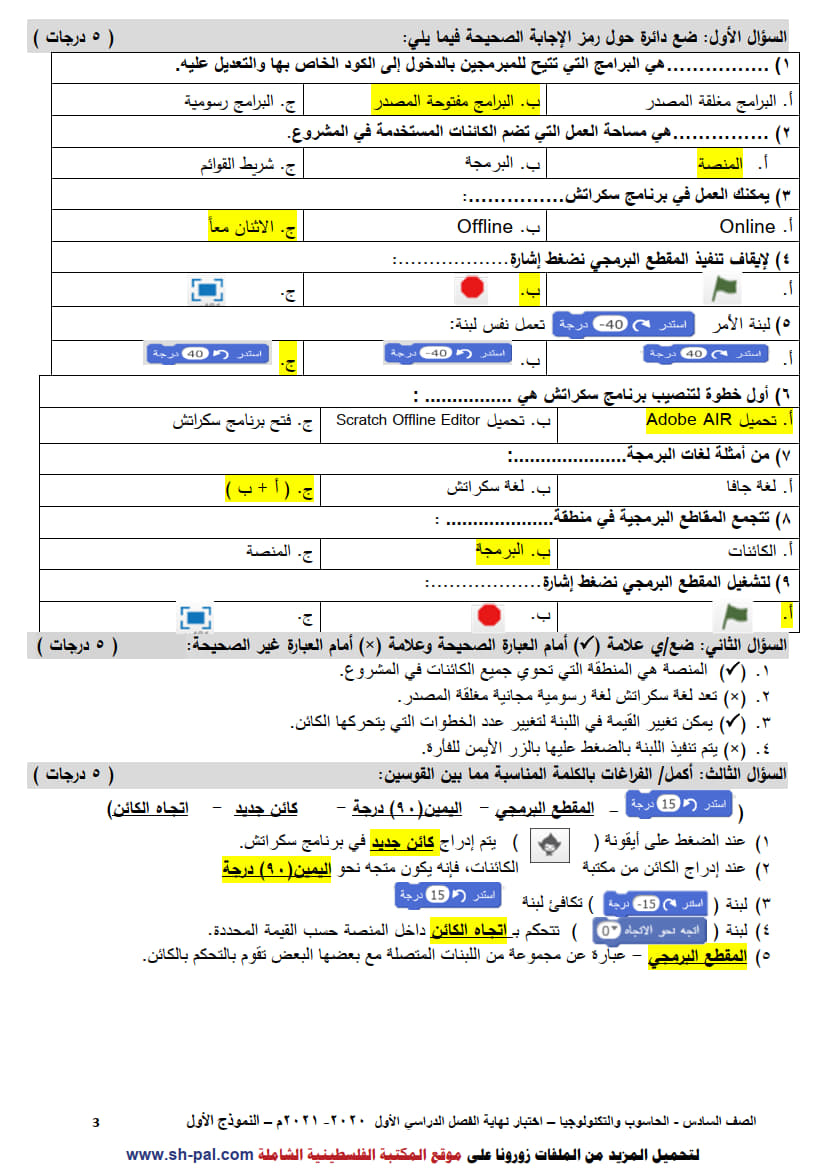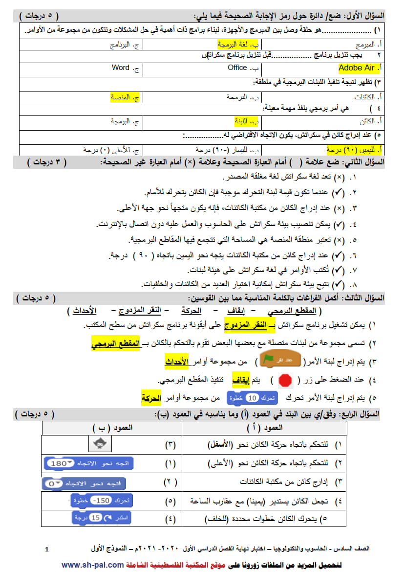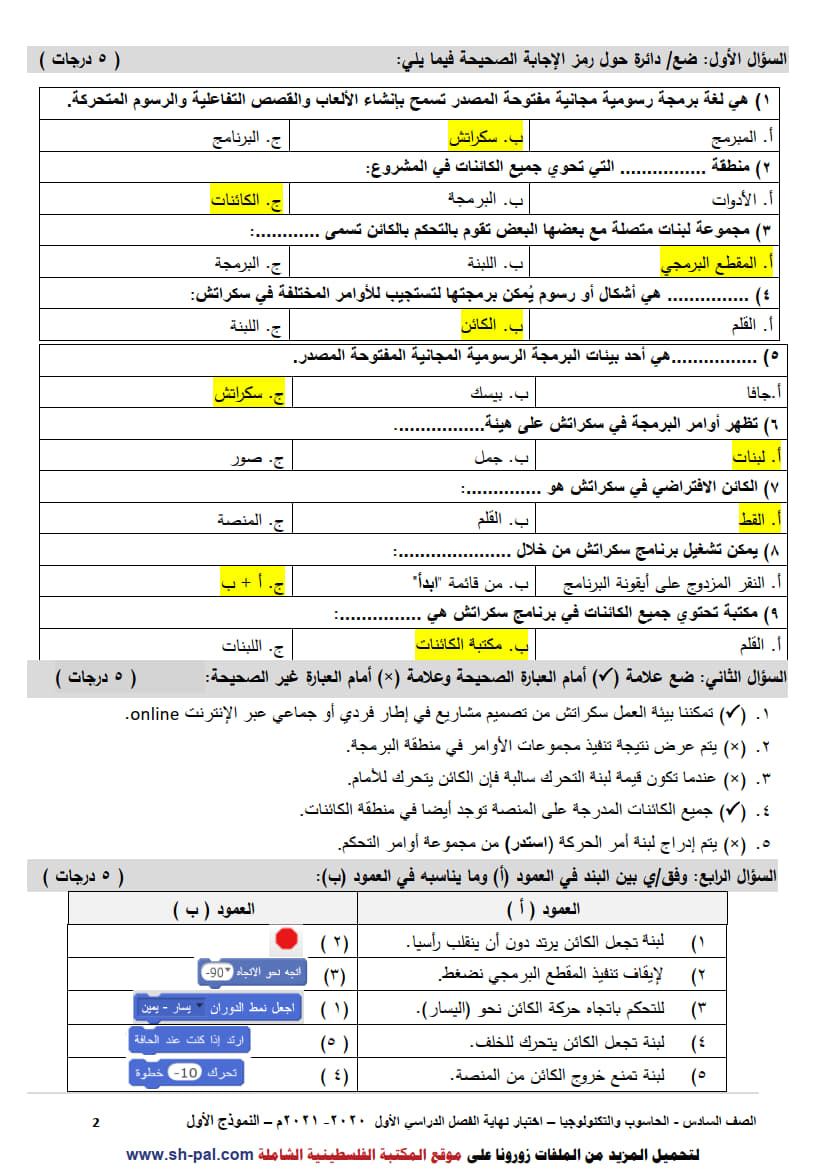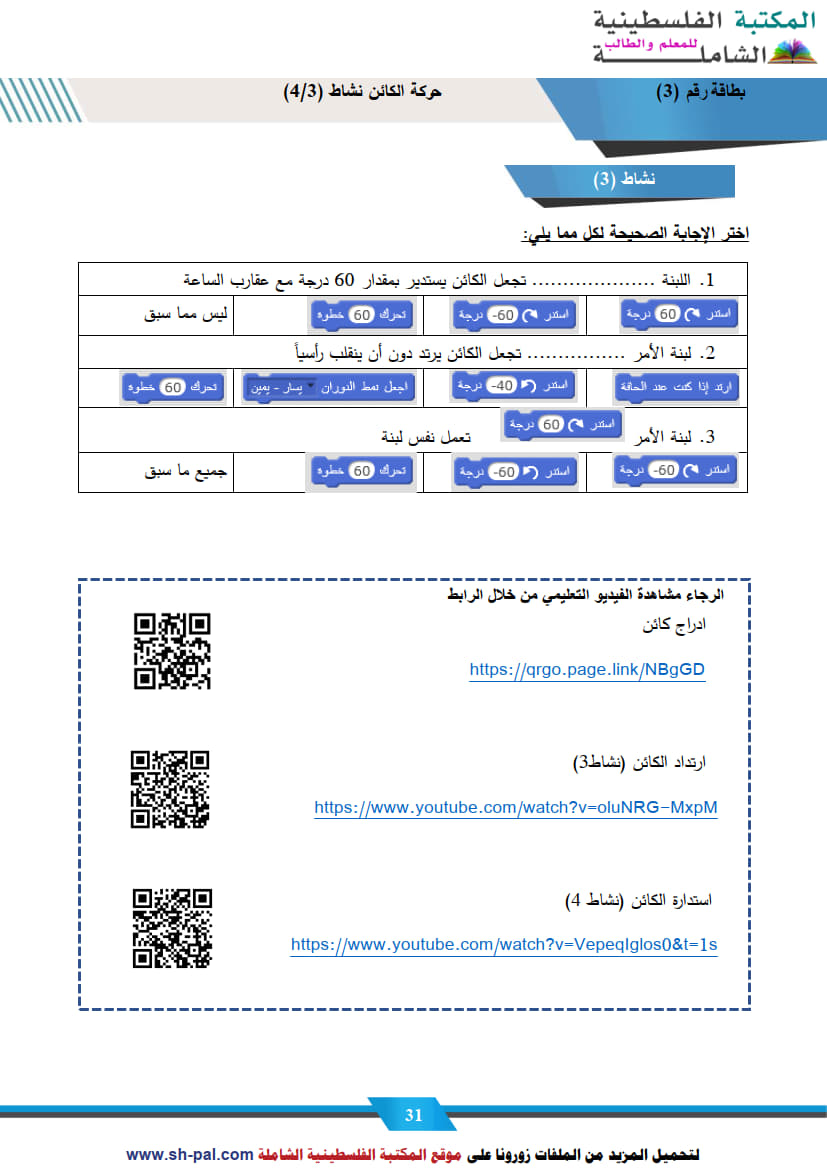 ثالثاً: مراجعة مجابة في درس حركة الكائن سادس ف1