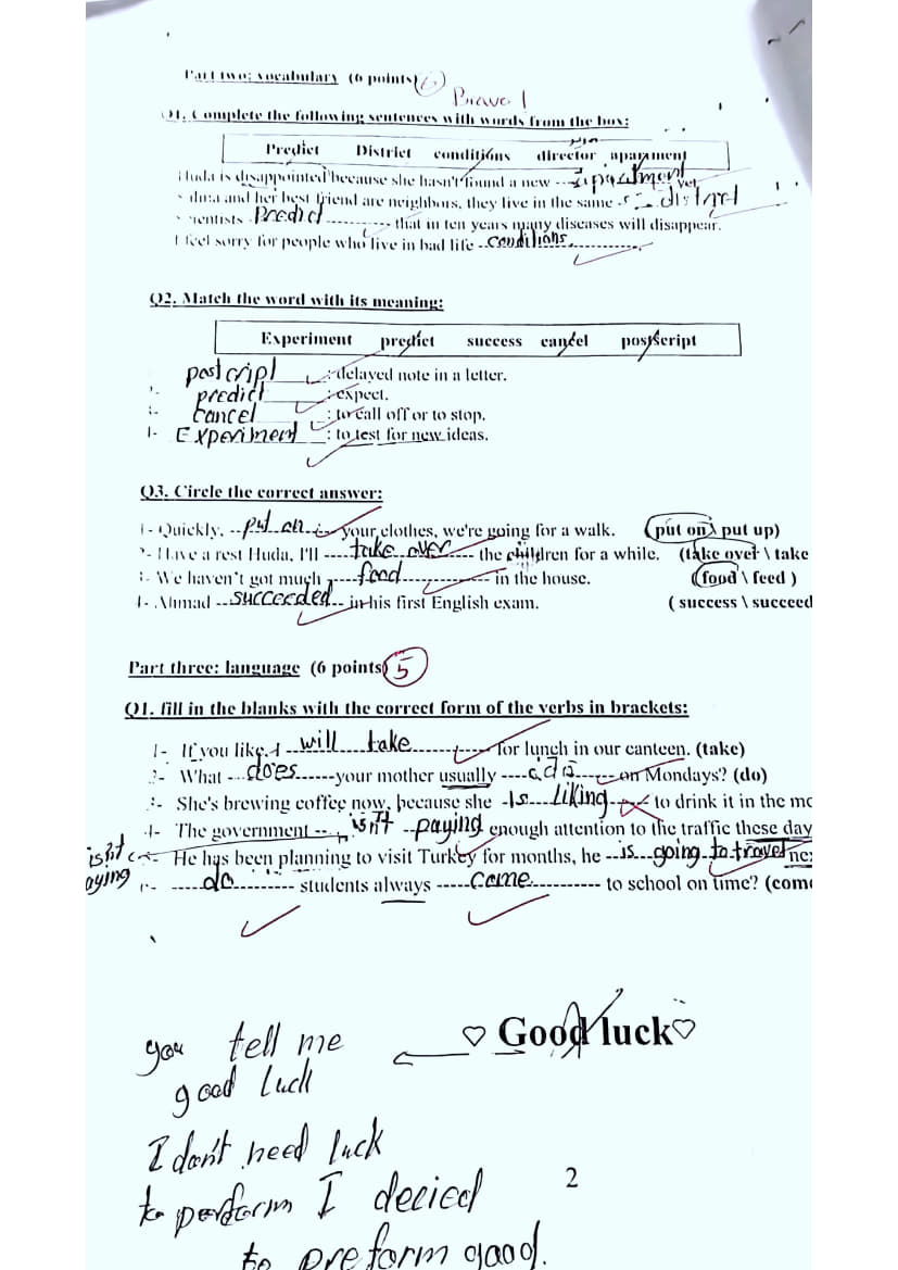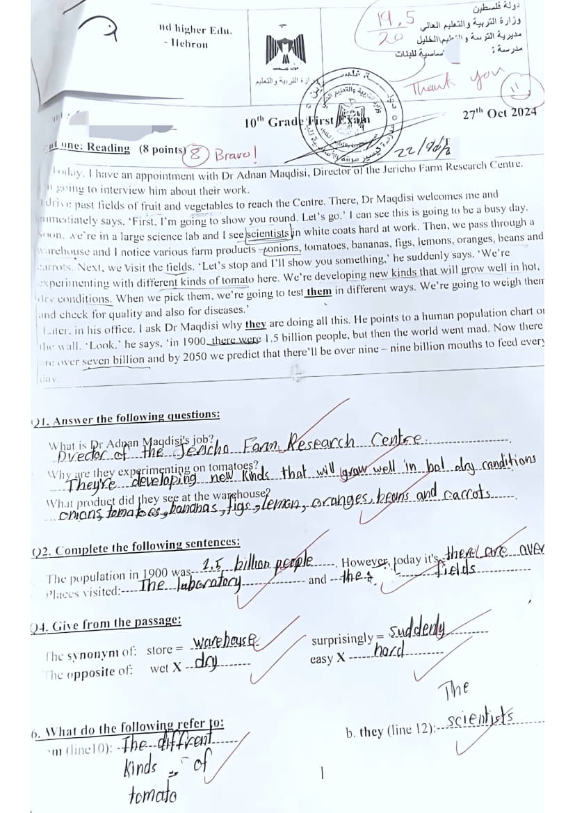 اختبار انجليزي شهرين للصف العاشر الفصل الأول