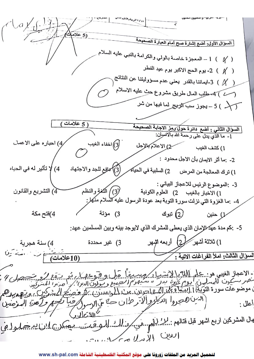اختبار نصفي في التربية الإسلامية للصف العاشر الفصل الأول