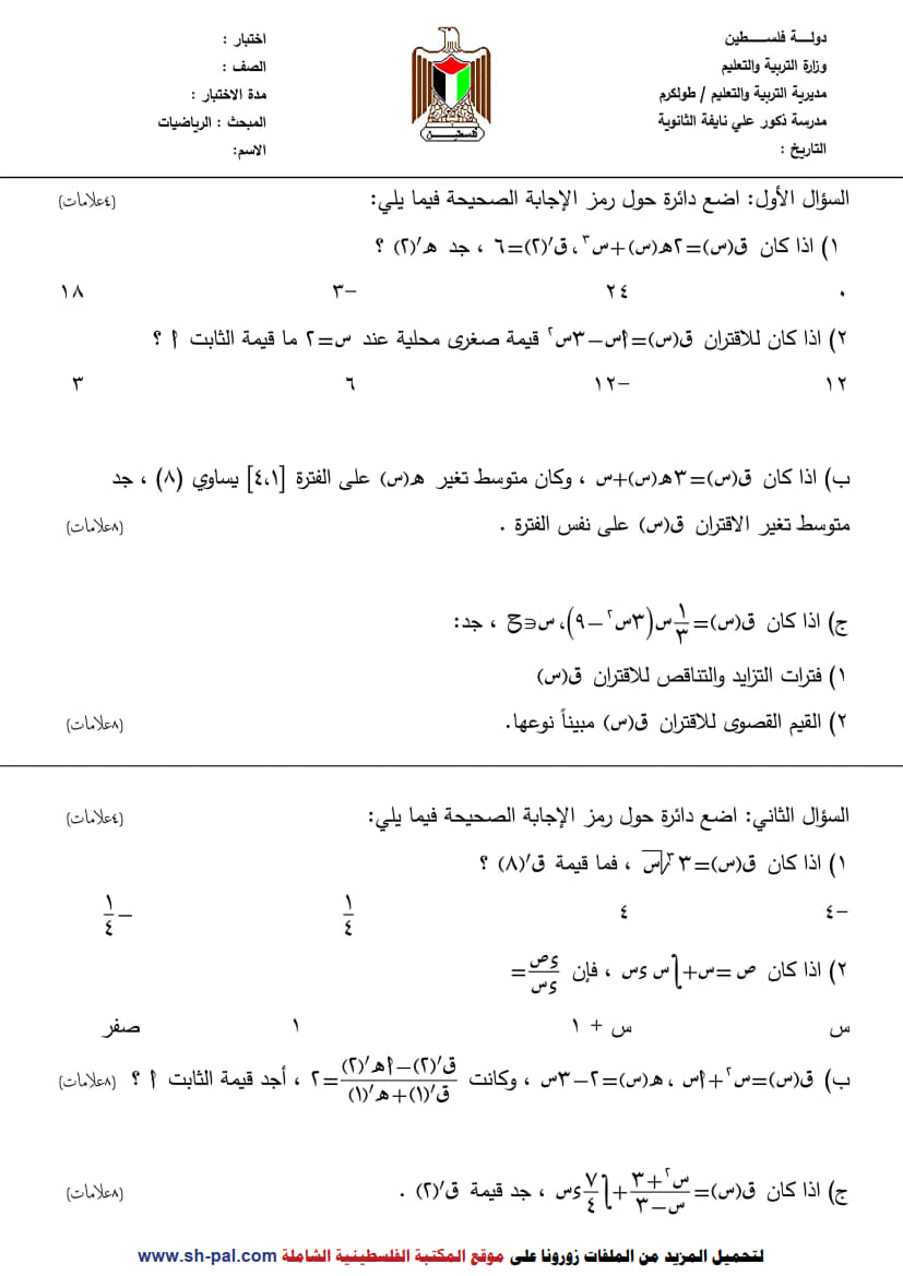 اختبار نصف الفصل الأول في الرياضيات للصف الثاني عشر (أدبي) 1.jpgاختبار نصف الفصل الأول في الرياضيات للصف الثاني عشر (أدبي) 2.jpg