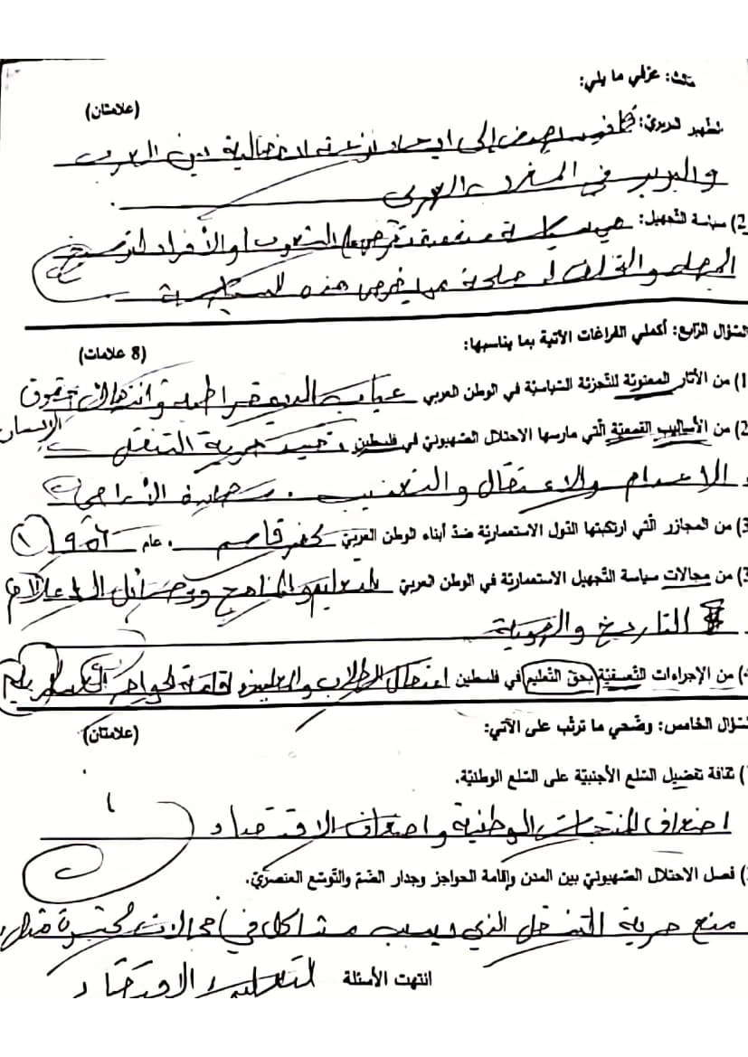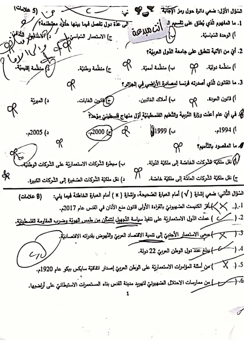 اختبار نصفي في الدراسات الاجتماعية للصف التاسع الفصل الأول