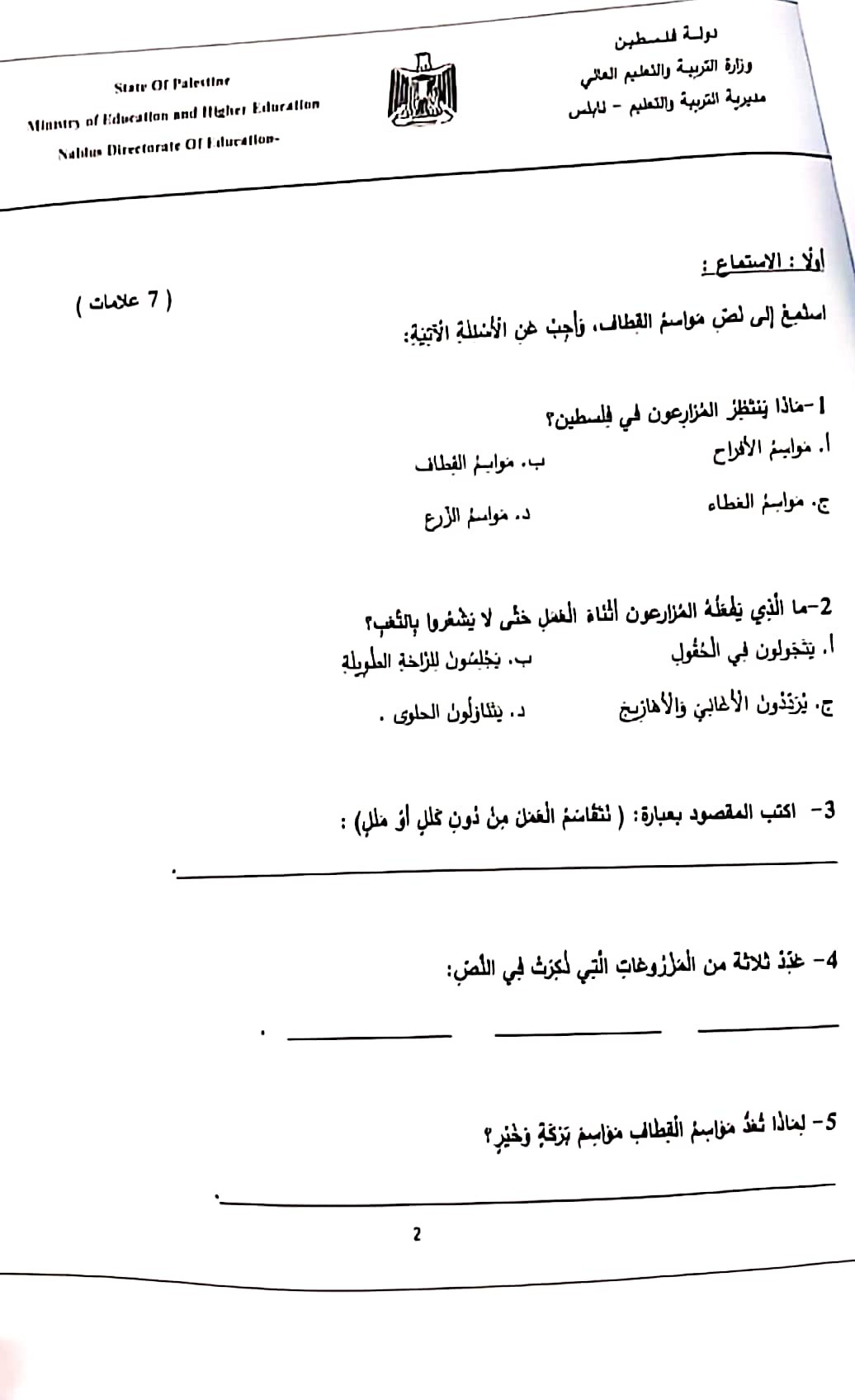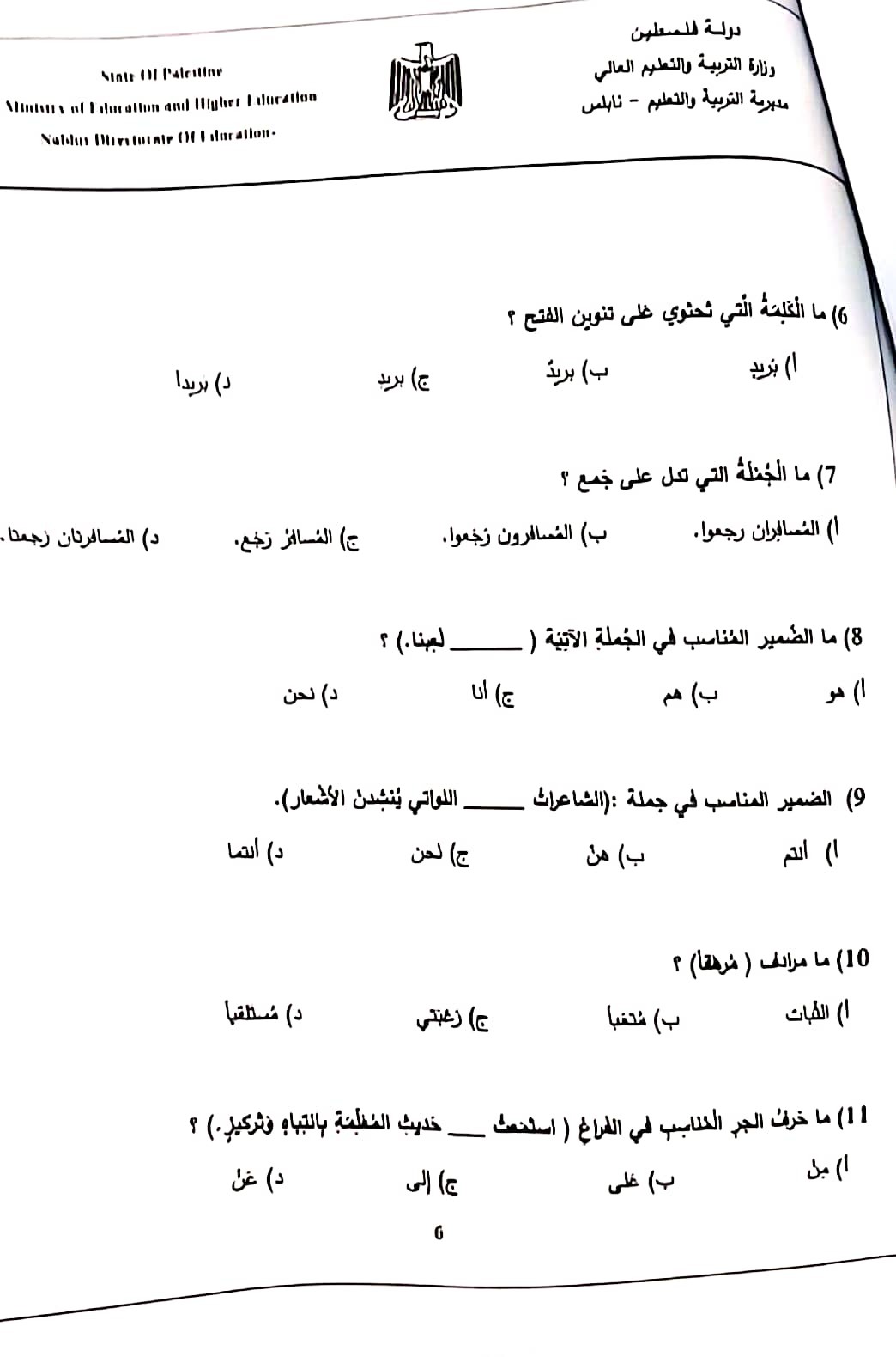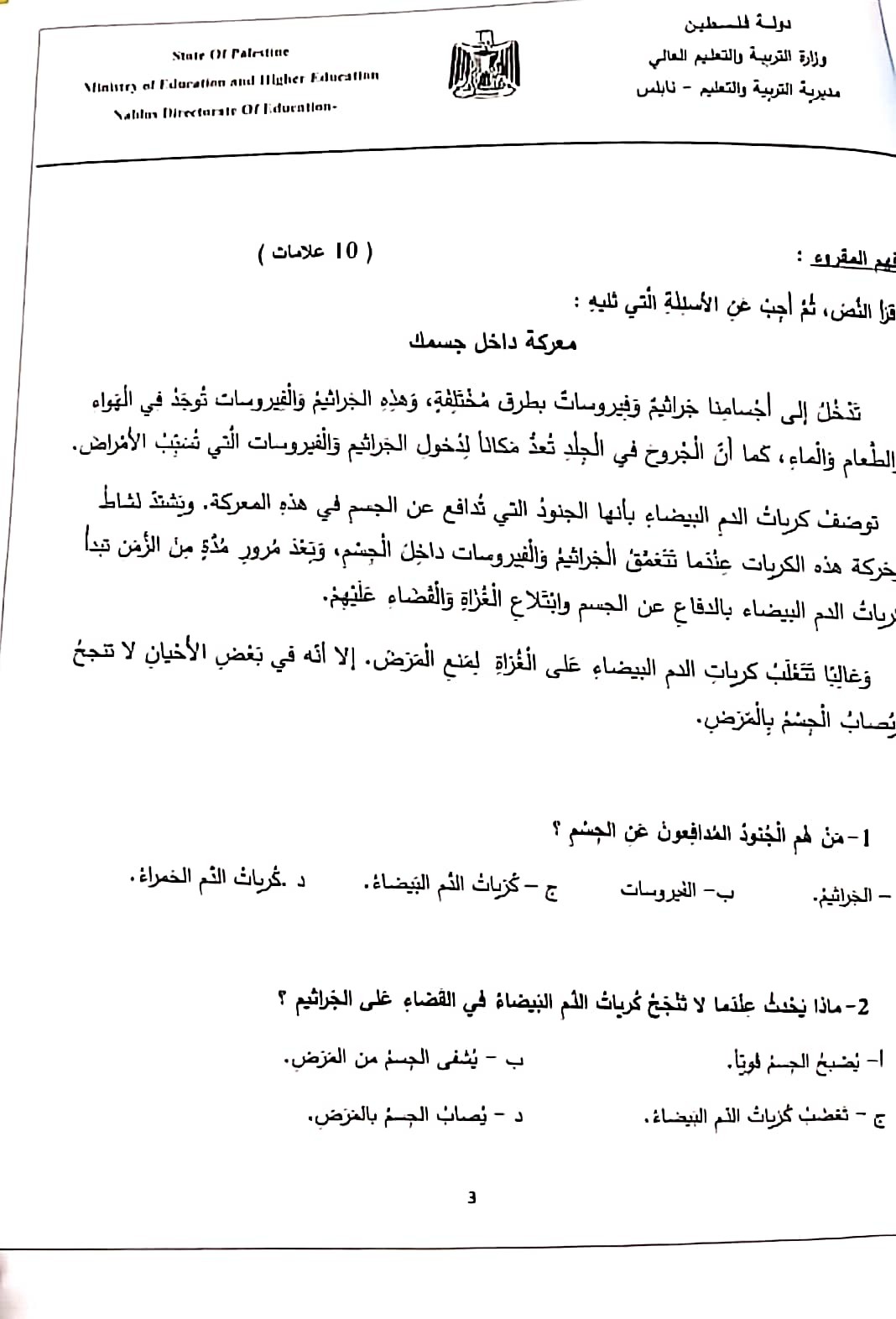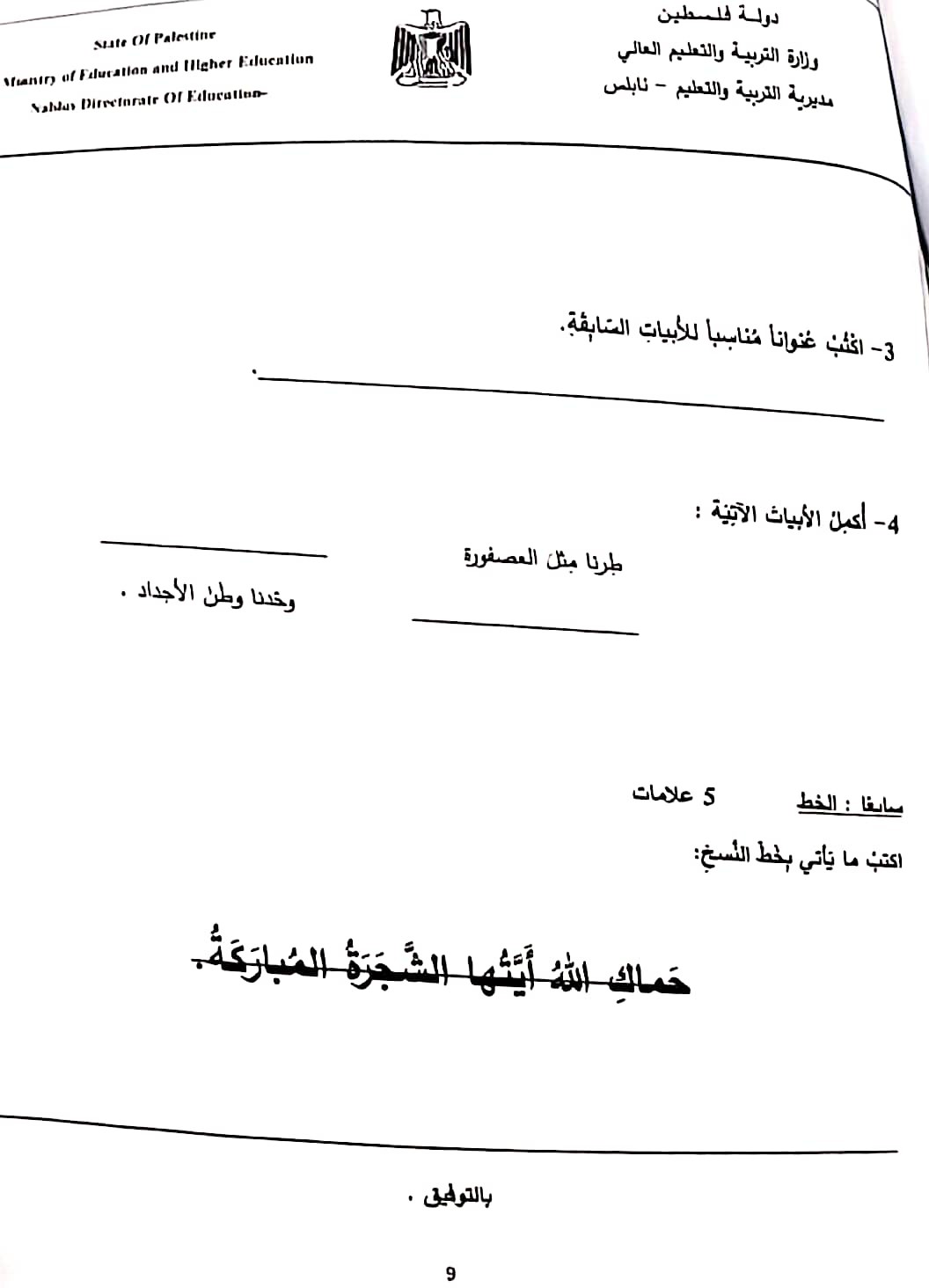 اختبار الشهرين في اللغة العربية للصف الرابع الفصل الأول