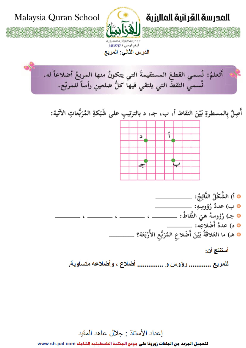 ورقة عمل درس المربع للصف الثاني الفصل الأول